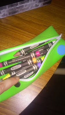 Any pencil pouch that will fit in the tin will do. I think these foam pouches from Oriental Trading are the best because they can be easily decorated and will fit in most tins. In fact, they even come with foam shapes to stick to them. After you stick the self-adhesive magnet dots to the pouch, stick it to the tin. I put Tbomb's dry erase crayons in the pouch, but you can use it for anything.